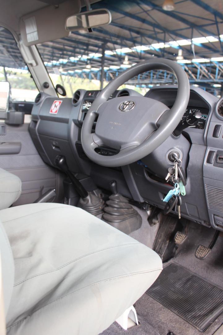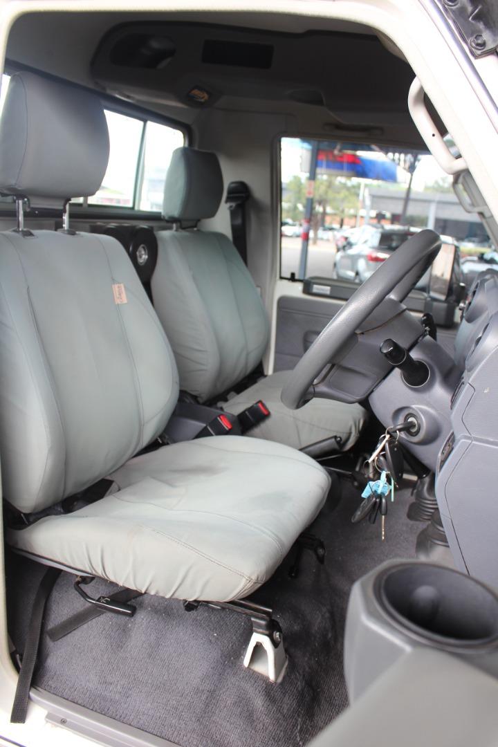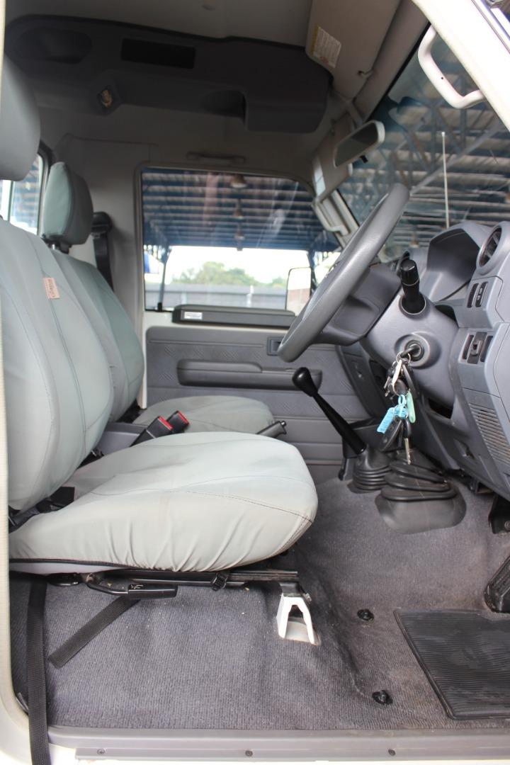 2013 Toyota Land Cruiser 79 4.5D-4D LX V8 in white, built for serious work and overlanding. The legendary 4.5l V8 turbo diesel delivers 151 kW and 430 Nm for confident towing and load carrying, while the 180 litre dual fuel tanks and an average consumption of 11.6 l/100 km give an impressive range of up to 1 552 km between fill ups. With a front mounted diesel V8 and robust 4×4 underpinnings, this Cruiser is ideal for farms, mines, touring and remote site use where reliability is non negotiable.